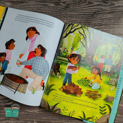 Fatima has a rough week at school from her class mates and she is looking forward to the family’s first ever camping trip. The fun roadtrip, the tent set up, their ethnic food, glimpses of stories from their life in India, their first anxious sleep in the tent, mama coming to the rescue to get the fire going, halal bacon and more. Even after all the hiccups, Fatima has found solace, comfort and escape in the outdoors.