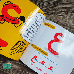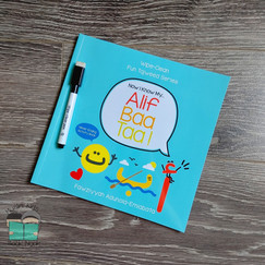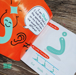 This is a wipe-clean book that teaches the Arabic Alphabet. It comes with a dry erase marker to use on its glossy pages. The same format is followed throughout the book; a two-page spread for each letter. One side has a clever description and shape of the pertaining letter, the other is the tracing practice page. In addition to the large individual letter on the tracing page, the kids can practice to write each letter formation in the beginning of a word, middle or end. I actually really like this book because the full color appeals to the little eyes and they can erase and re-use the practice pages. Younger kids will have a blast tracing and as they get older they will be able to independently read the letter descriptions. Although it does target children, I think this book would help individuals of any age that are beginning to learn and practice Arabic letters.