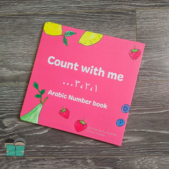 Count with me is a board book that introduces the little ones to Arabic numbers. The book offers numbers 1-10 in Arabic, the number word, an accompanying fruit that correlates to the number and the name of the fruit. The Arabic words include vowels to help kids practice their Arabic. Each word has the transliteration English transliteration below. It is a short book so part of me wished it had more to offer, instead of 1 number per page maybe have it as present as two page spread per number. The book opens from right to left. The simple approach to teach counting, along with the soft colour tones makes the book an easy to use interactive option. Also the big size of the book make it easy for little hands to work with it. Definitely recommend this book.