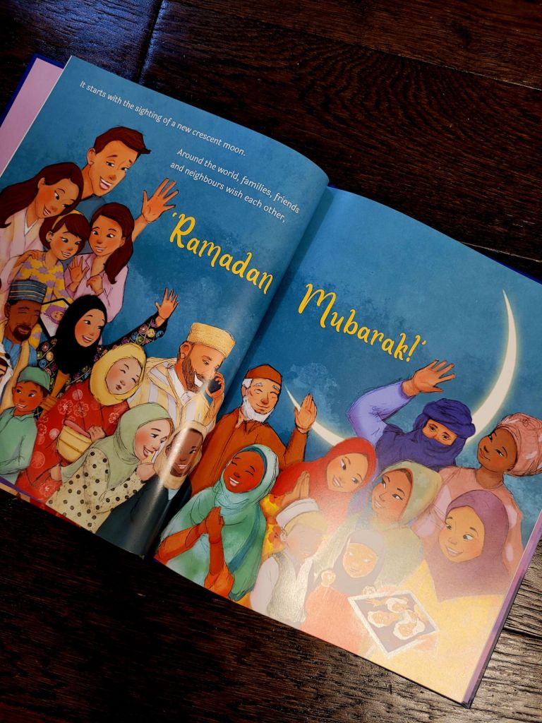 This book is beautifully illustrated and textually worded. The mixed race family, the gentle and whimsical tone of the story is so heartwarming. The relatability of Muslim kids similar ages to Deenie is so accurately displayed through the story. She finds it difficult to fast initially, but as days pass, and she finds beauty in the things around her to pass her time, her fasting days get easier.