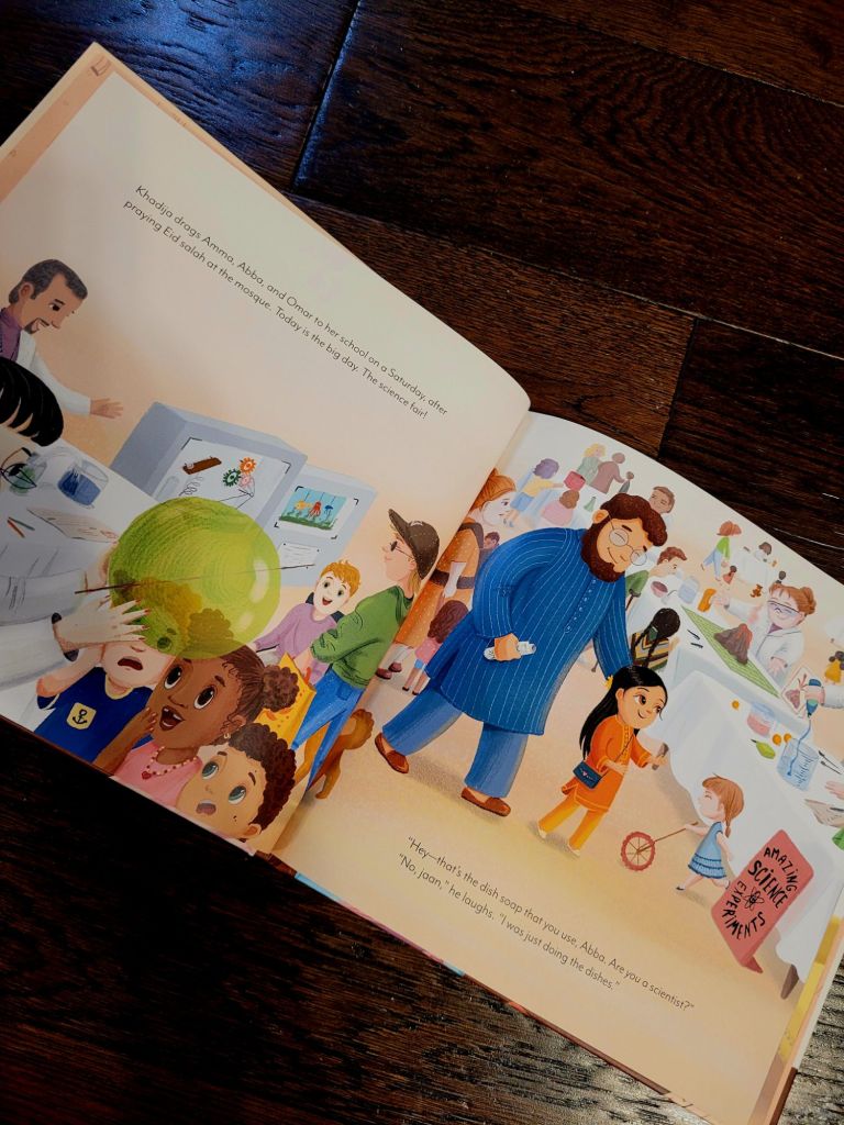 Khadija has to attend a science fair on the day of Eid. It is her dream to be a scientist when she grows up, but she notices that the scientists at the science fair do not look like her mother, they don’t wear hijab.