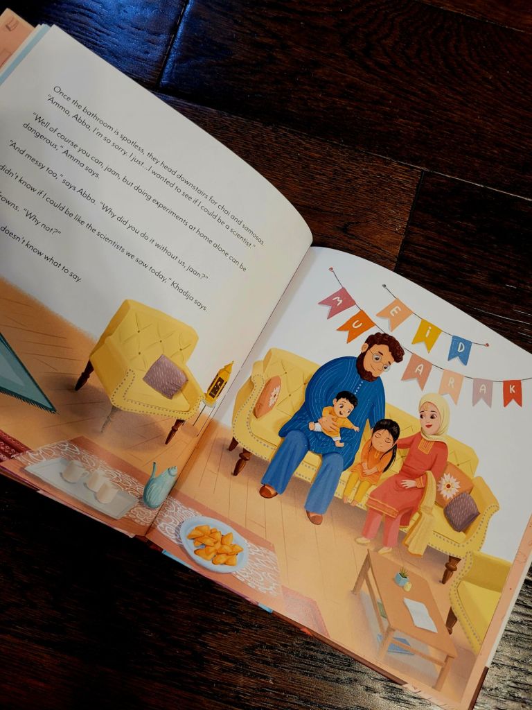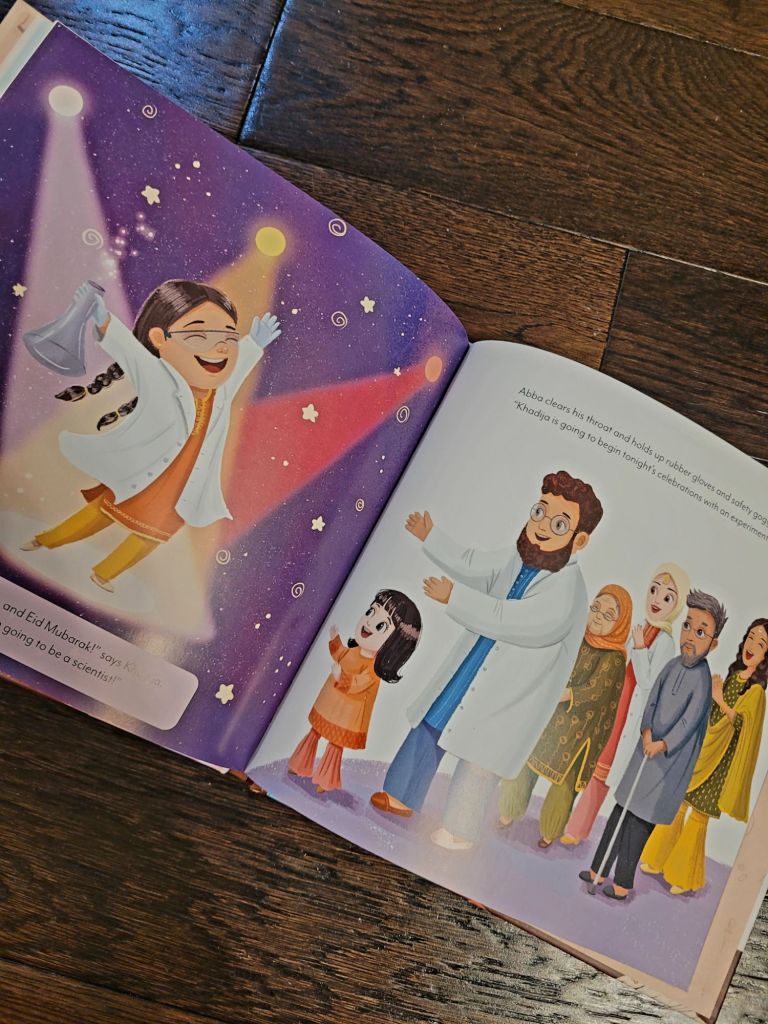 The story is set on the day of Eid but the center of the story is science. Makes her Muslim identity a natural part of her. Which is so relatable to Muslim families in the west because many may have to commit or attend other events that may fall on the day of Eid and they make it work.