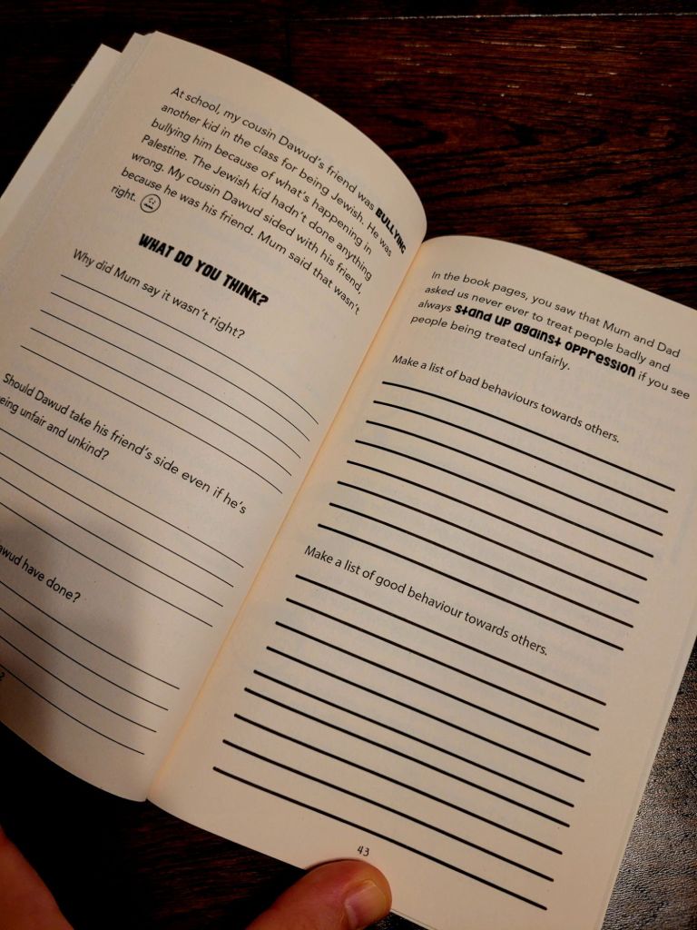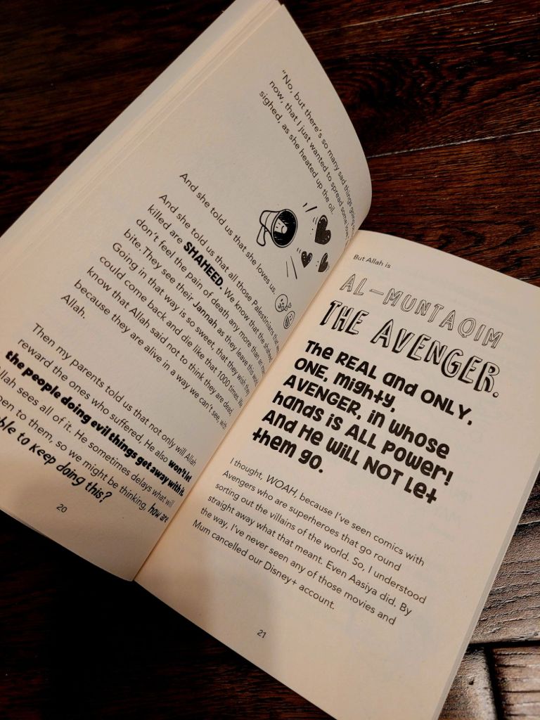 As we have seen in previous books, Eliyas is a cheeky boy filled with humour and giggles in which he explains each topic. However, due to the nature of this topic, the tone is a little more serious in nature. But that doesn’t take away the pure voice of the 9 year old that is filled with curiousity and questions.