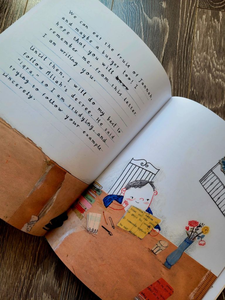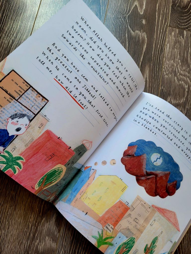 The book poses curious questions and encourages the imagination of a Muslim children everywhere. The text is relatable, easy and written in rhyme. Aside from the prophet’s s.a.w.s. physical features described in the text, the letter touches up on a few sunnahs foods, sunnah actions and Isra wal Miraj journey. I would consider this as more of an advanced picture book as it is a little on the longer side text-wise.