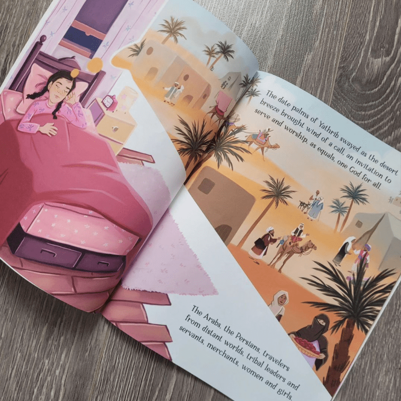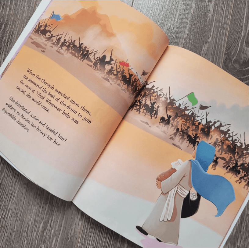 Concerns: there is a disclaimer saying that the author belives there shouldn’t be depictions of sahabas, but the girl shown in the book is the little girl dreaming of herself as THE Nusayba r.a.