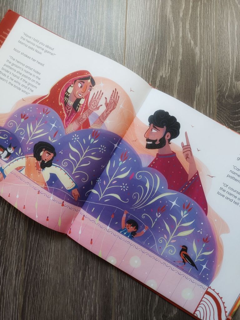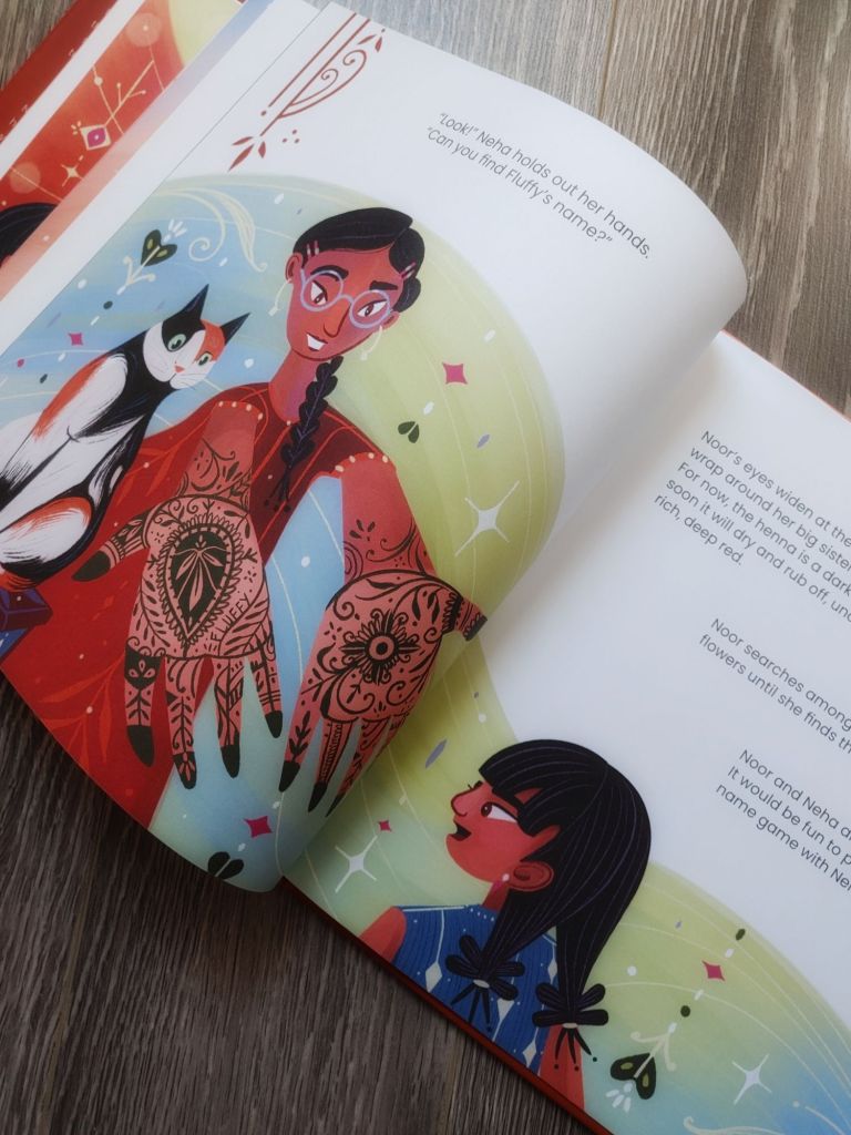 Noor’s cousin is getting married and Noor is ready for the henna artist to create fabulous henna designs on her hands. However, everyone is hiding a loved ones name in their henna designs and that person has to find it. Noor has a dilemma and doesn’t know which special person’s name she wants to include.