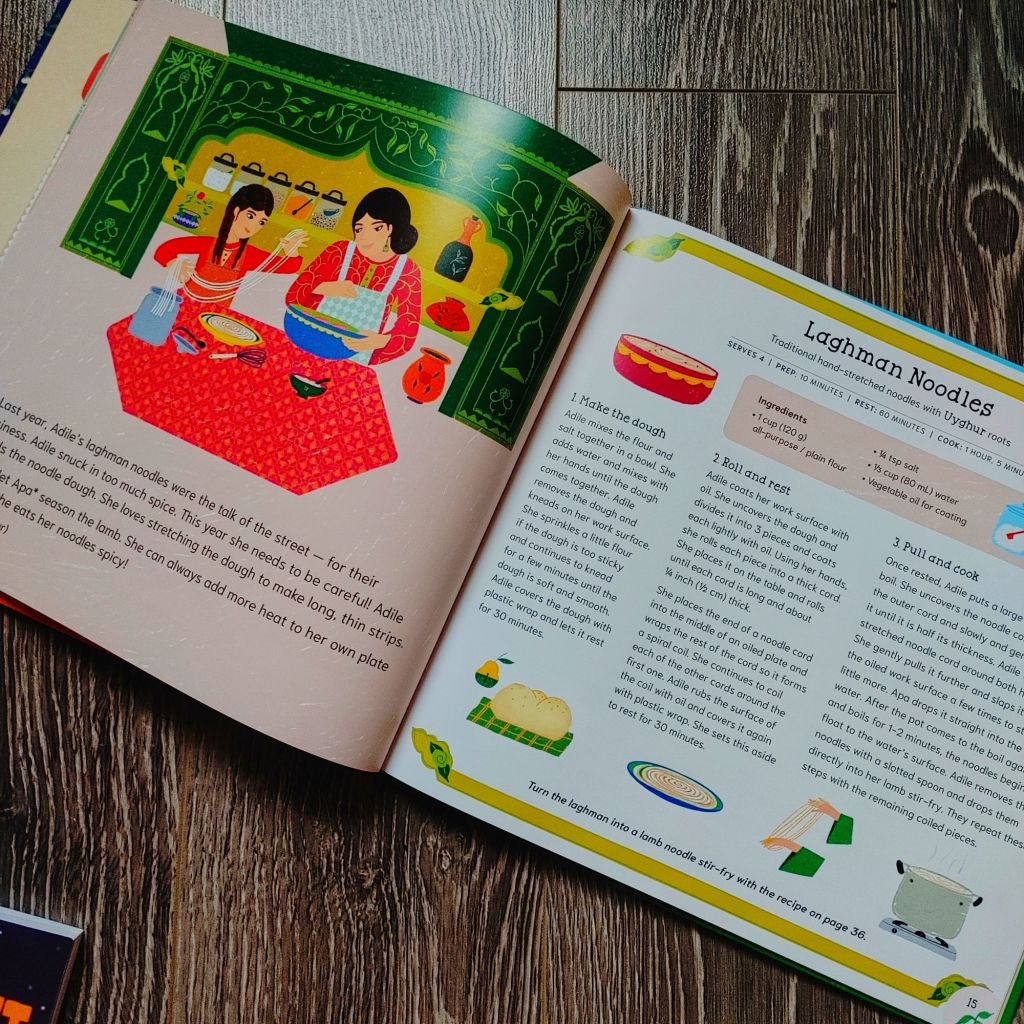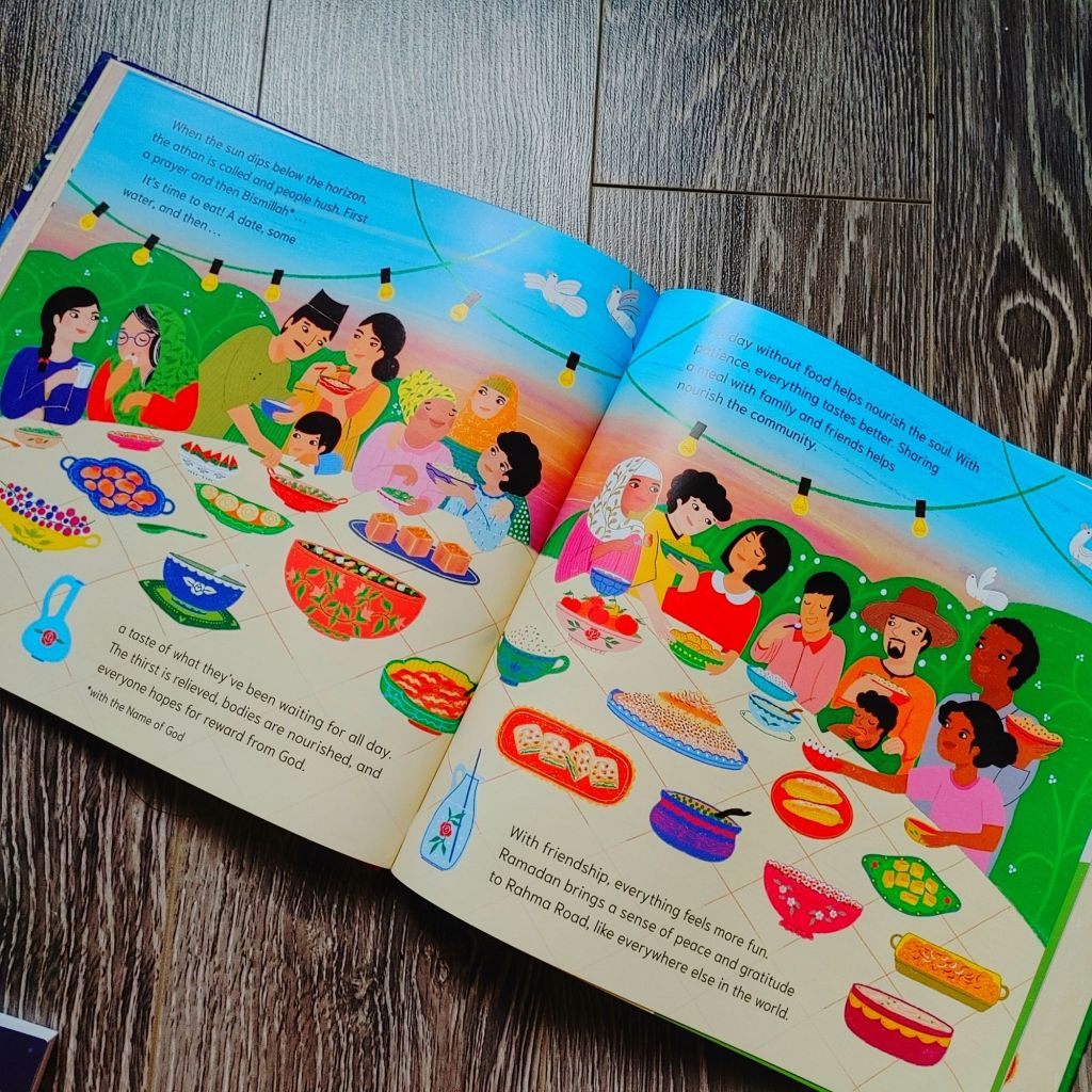 This book doesn’t follow a typical storyline with plot. It is a book that brings together a multicultural community for an evening of delicious iftar. It is a recipe book that can be used to make delicious treats from different cultural backgrounds. The book works well in its execution and I might even try a recipe or two with my kids this Ramadan. The backmatter if full of information about Ramadan, Rahma Road, recipes and more. This book has so many layers within it, community, faith, generosity and of course food.