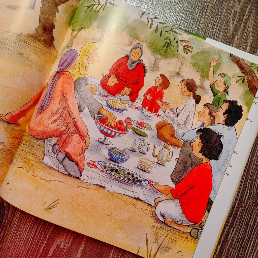 My oh my. This heartwarming book is full of ancient tradition, rich culture and multi-generational family ties. The story is sweet and beautiful and full of joy. Ali learns a lot about the process of harvesting, processing and how resourceful olive trees are for his family and others in the village. I love that this book focuses on celebrating the joy of Palestinian traditions, thus it is not a Muslim centered book. I love the tender family ties that this story highlights, their family picnic under the olive tree. The illustrations are absolutely beautiful. A must read book for all families.