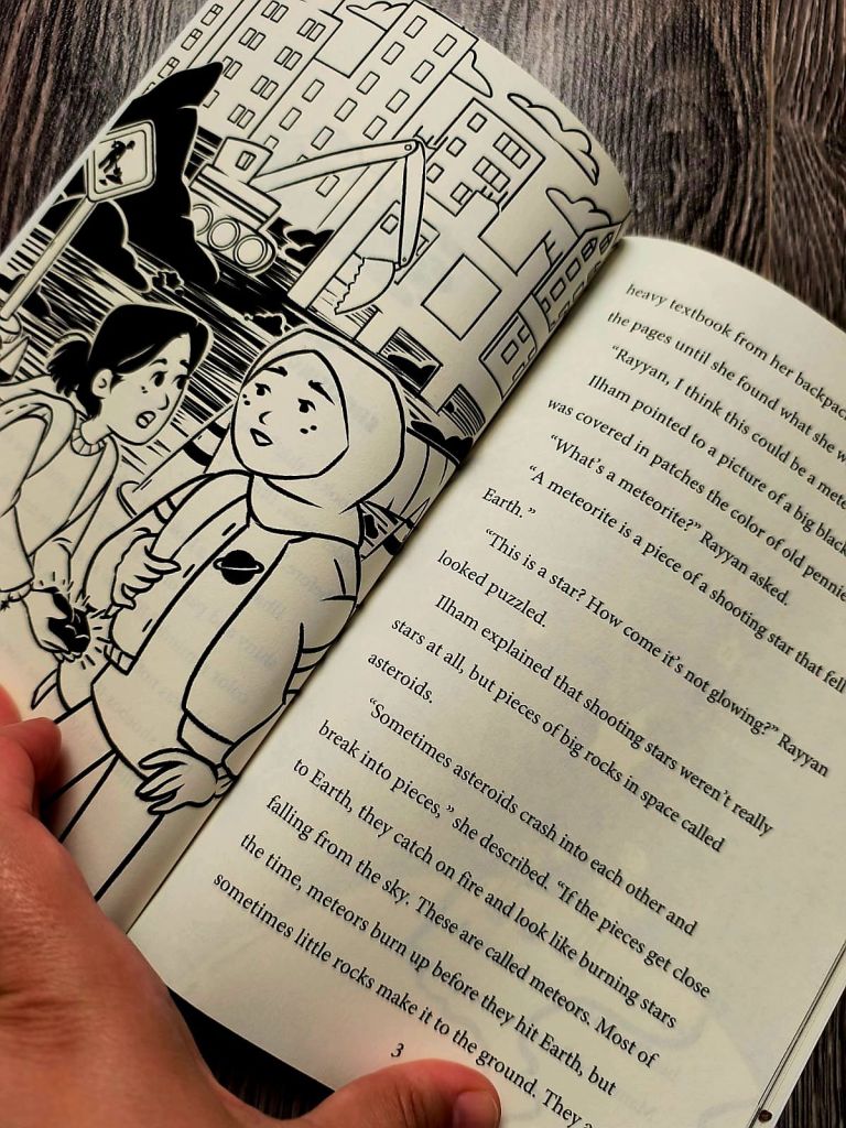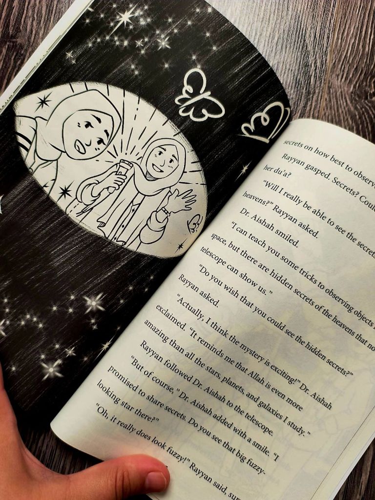 This early read chapter book was a delightful surprise. It centers around the topic of stars, meteors, and centers Allah and His limitless powers to create all the things we see and to keep us curious about the unseen. The way the author has tackled this topic and the layers she has peeled back and explored in here is clever and spot on. I love that the sisters have such an incredible bond and how the older sister is gently guiding the younger one.