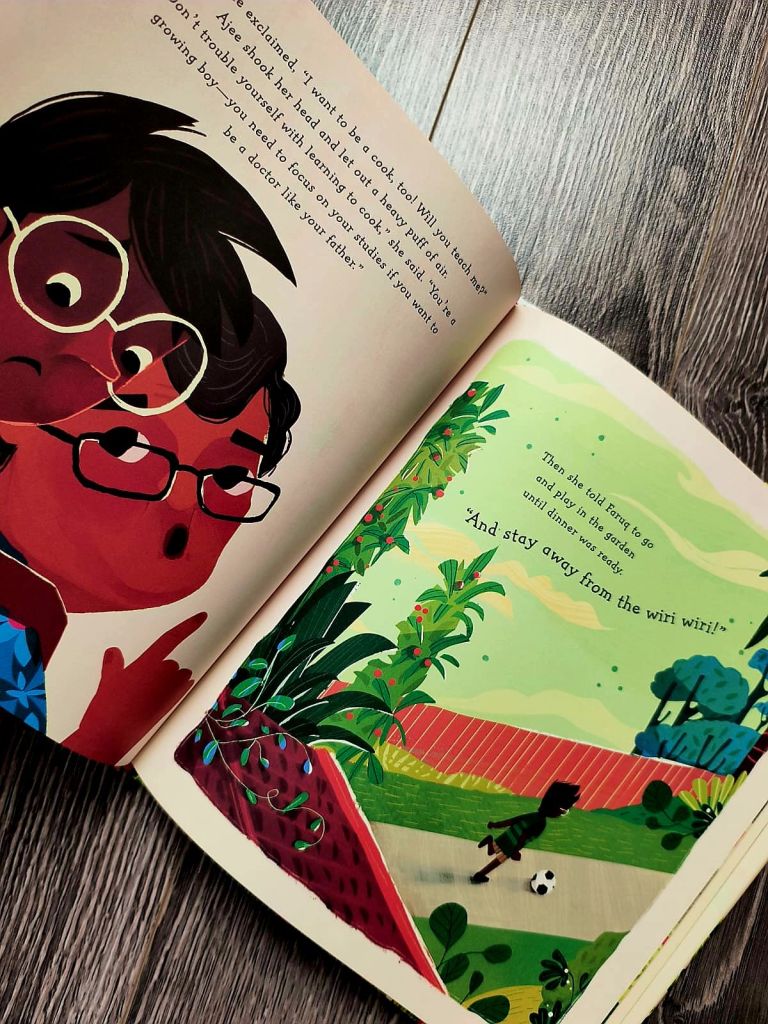 The story and the illustrations are brightly rich with culture and delicious traditional food. Although the name Faruq can pique the interest of Muslim readers, this book has zero Islam, rather it focuses on cultural representation. This can be a great discussion starter about gender stereotypes when it comes to careers.
