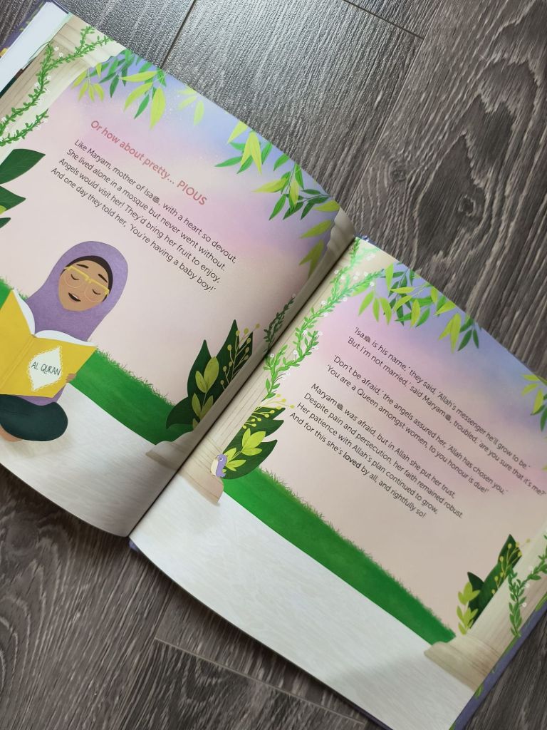 In this day and age where our kids have easy access to devices and social media, this book has an important message to share with Muslim girls everywhere. The text is written in rhyme and it is a conversation between mother and daughter. I love the premise and the angle in which this story is shared. To help our mini Muslimahs find inspiration from the incredible women in Islam and touches on the characteristics that these individual sahabiyahs were known for. To be pretty wise, to be pretty brave, pretty smart, etc. The inside of the back cover has mini mirrors with the traits that we read about in the book.
